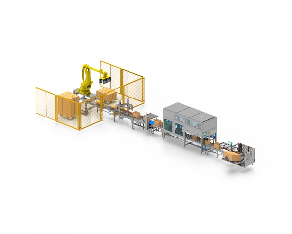 Utilizing robotic arms for boxing and palletizing robots for palletizing, replacing manual labor with high intensity and repetitive work, high-precision operation, small footprint, large operating range, and good safety performance;
